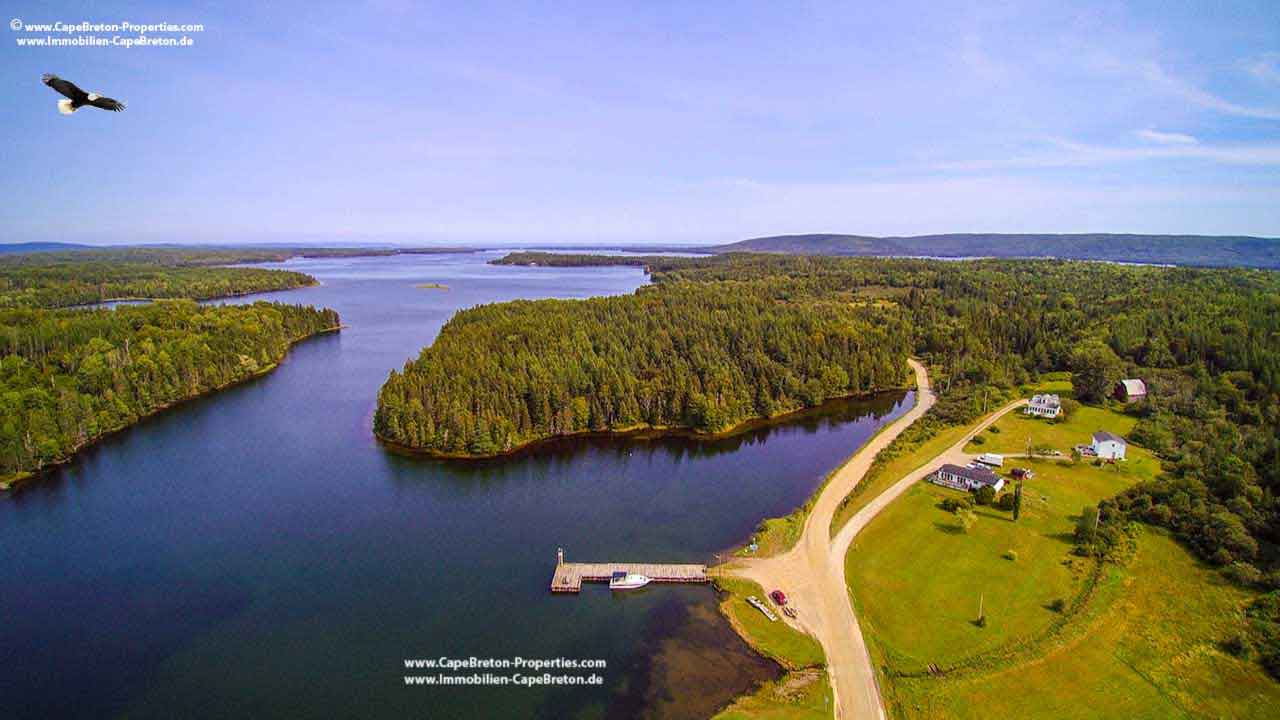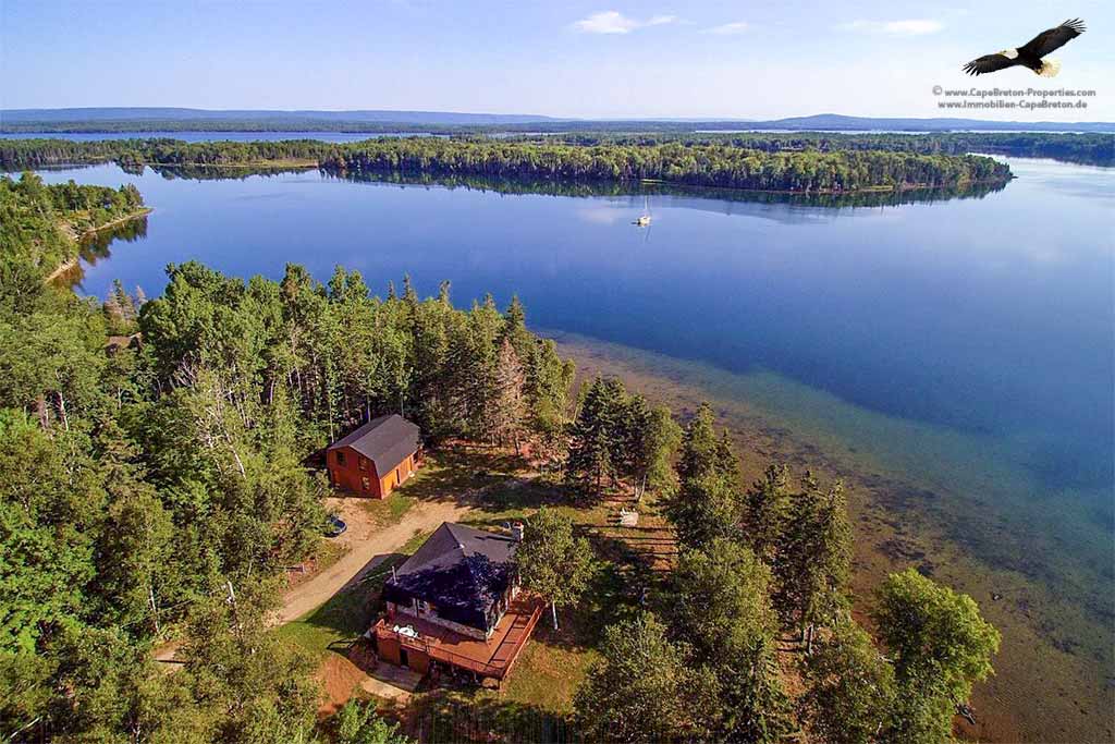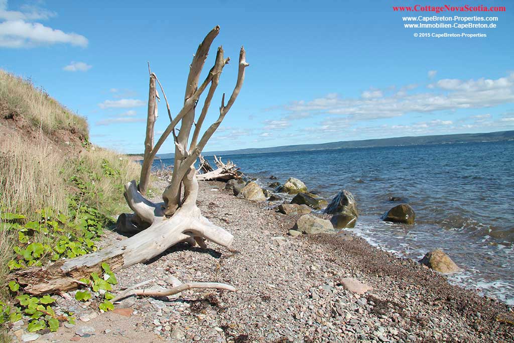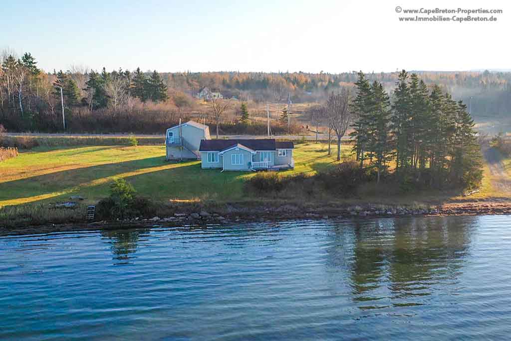 3.3 acres / 1,3 Ha land with around 283 Feet / 84 m shore front sheltered location near the mouth of River Inhabitants into the Atlantic, gently sloped, facing South, 24” x 24” on 3 levels, 2 bedrooms, 1 bath, partially finished basement, drilled well, septic, power, internet, phone, on public Walkerville Road, near Town of Port Hawkesbury and the vibrant tourist village St. Peters, between the Cape Breton Highlands National Park, the Cabot Trail and the Atlantic,