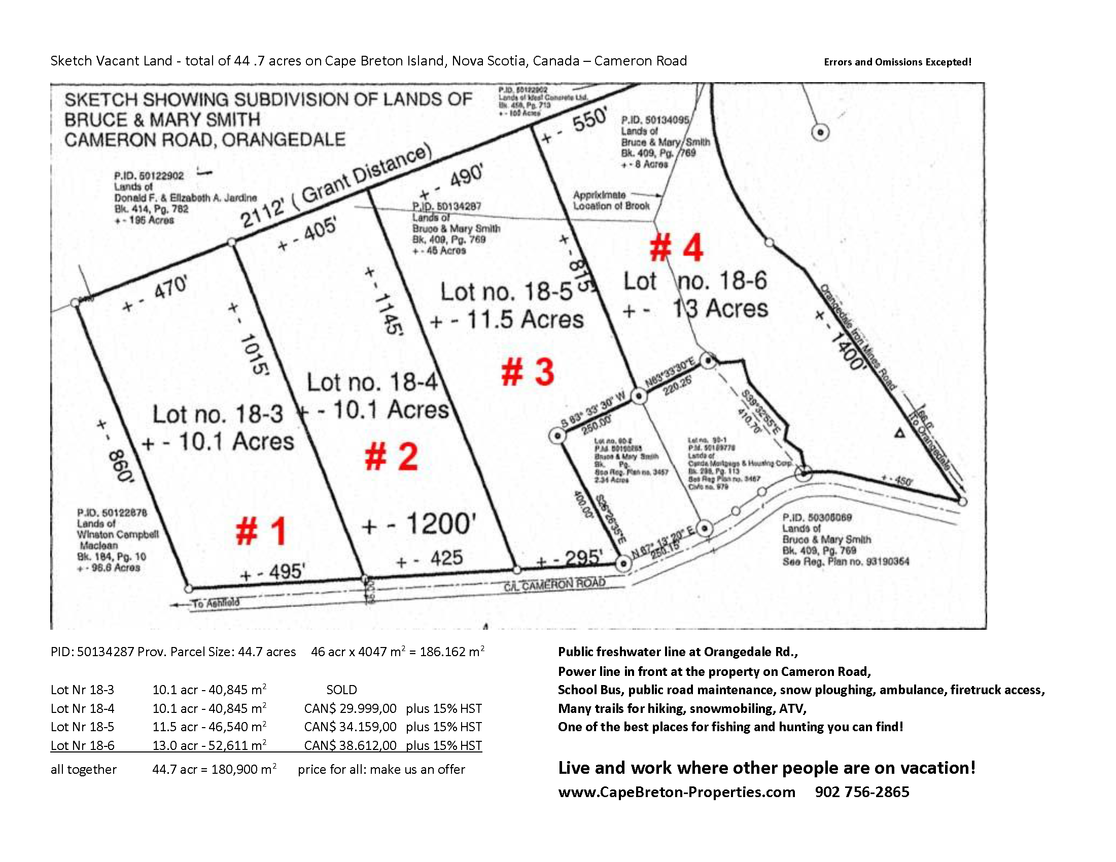 Lot Nr 18-4 10.1 acr - 40,845 m2 CAN$ 29.999,00 plus 15% HST